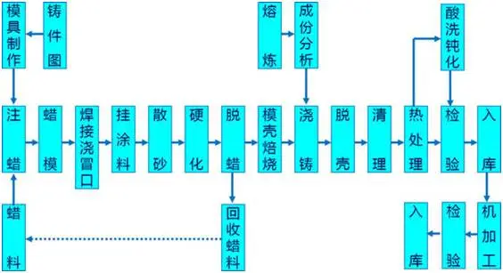 熔模鑄造用蠟料做模樣時(shí),熔模鑄造又稱"失蠟鑄造"。熔模鑄造通常是指在易熔材料制成模樣,在模樣表面包覆若干層耐火材料制成型殼,再將模樣熔化排出型殼,從而獲得無分型面的鑄型,經(jīng)高溫焙燒后即可填砂澆注的鑄造方案。由于模樣廣泛采用蠟質(zhì)材料來制造,故常將熔模鑄造稱為“失蠟鑄造”。